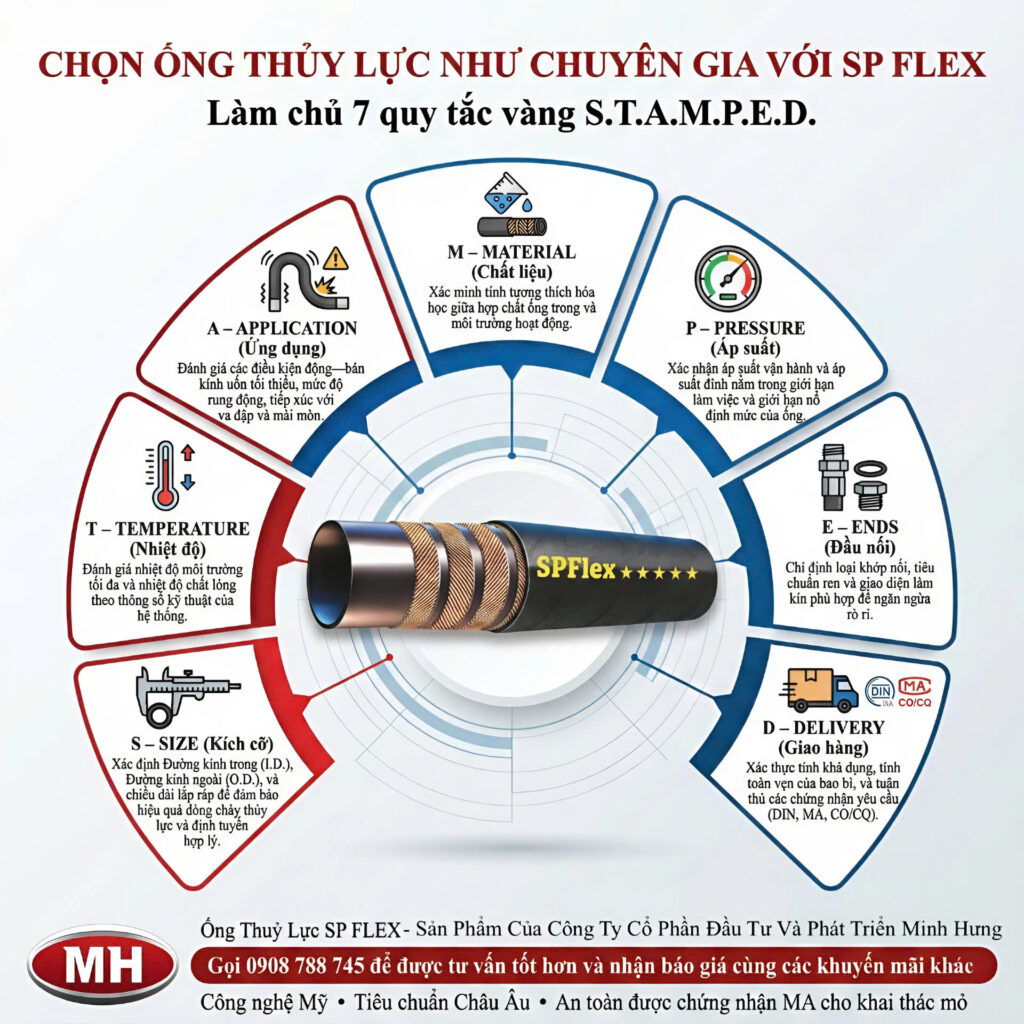 Chọn ống thủy lực đúng không cần “đoán mò” hay phụ thuộc cảm tính. Chỉ cần làm chủ 7 quy tắc vàng S.T.A.M.P.E.D, bạn sẽ: