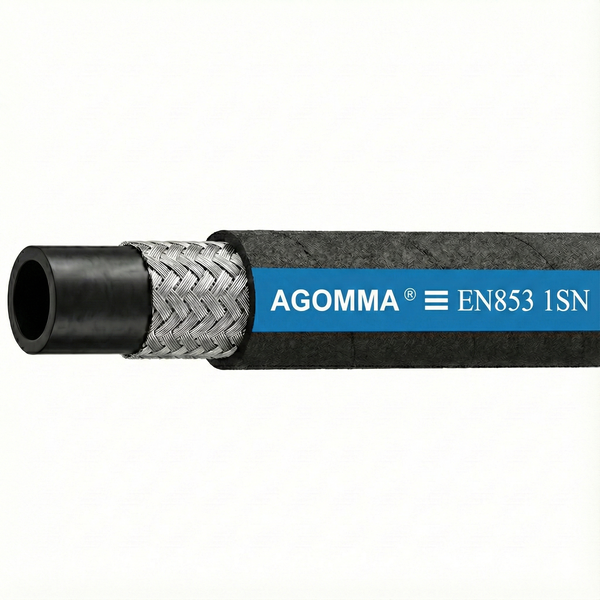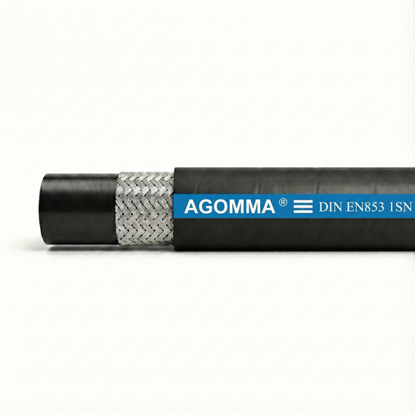 - Ống thủy lực AGOMMA 1SN (tiêu chuẩn SAE 100R1AT / EN 853 1SN) được thiết kế để dẫn truyền dầu thủy lực gốc dầu mỏ và dầu thủy lực gốc nước. Ống có cấu tạo gồm lớp cao su tổng hợp chịu dầu chất lượng cao, 1 lớp bố thép bện cường lực, và lớp vỏ cao su tổng hợp chống dầu, chống thời tiết, màu đen, bề mặt trơn hoặc bọc vải.
