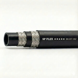 - SP FLEX DIN EN857 2SC là dòng ống thủy lực cao su gia cường 2 lớp dây thép bện, cấu trúc gần tương tự ống EN 853 2SN, nhưng đường kính ngoài nhỏ gọn hơn. Nhờ đó, ống đặc biệt phù hợp cho các hệ thống có không gian lắp đặt hẹp, đường ống đi gọn trong máy móc và thiết bị.